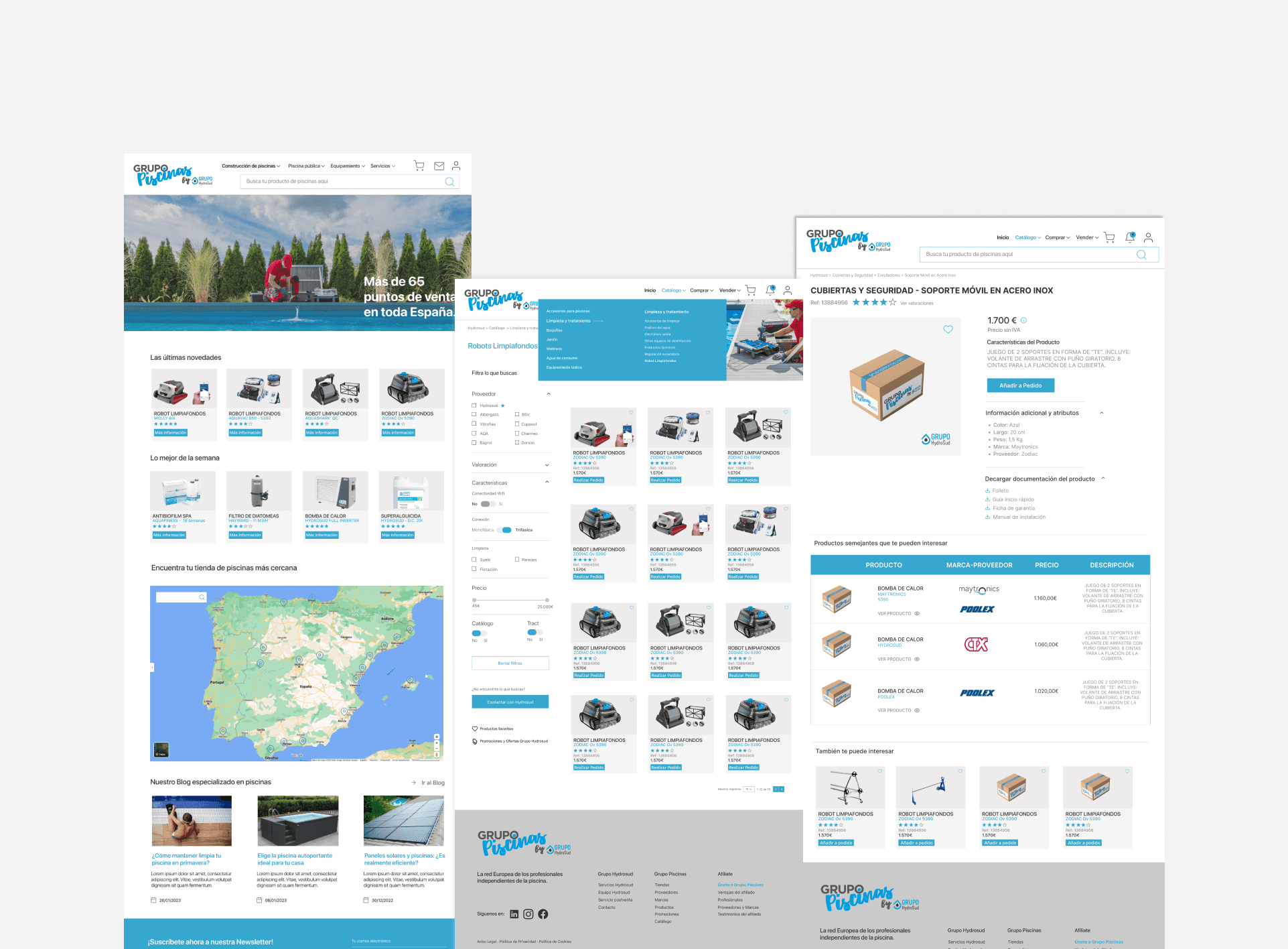 Rediseño de plataforma: para el grupo español de expertos en piscinas que buscan la mejor solución de gestión y venta.